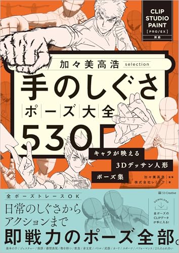 加々美高浩の「手のしぐさポーズ大全530」はキャラクターが映えるポーズ集です。3Dデッサン人形を使用しており、CLIP STUDIO PAINT PRO/EX対応で、描き方の参考にも役立ちます。