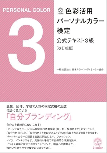 色彩活用パーソナルカラー検定公式テキスト3級[改訂新版]は、色彩やパーソナルカラーの基礎を学ぶための教科書です。検定対策に最適で、理論と実践がバランスよく組み合わさっています。