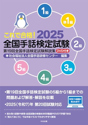 『これで合格!2025 全国手話検定試験 DVD付き』は、第19回全国手話検定試験の解説集です。試験対策に役立つ内容が収録されており、DVDも付いているため、視覚的に学ぶことができます。