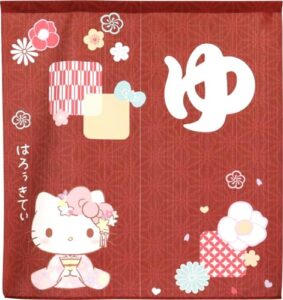 のれん工房 のれん サンリオキャラクターズ ハローキティ 湯 銭湯 温泉 お風呂 グッズ 雑貨 インテリア タペストリー ポスター 幅85×丈90cm 和モダン 和柄 間仕切り 目隠し ゆのれん工房 のれん えんじ 21738