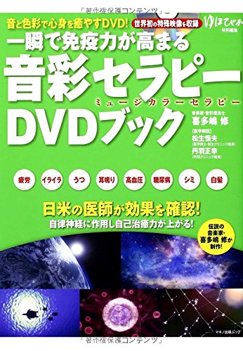 一瞬で免疫力が高まる「音彩セラピー」DVDブックは、音と色彩で心身を癒やす内容です。伝説の音楽家・喜多嶋修が制作し、世界初の特殊映像を収録しています。