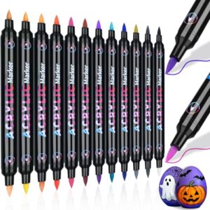 12本入り 24色 アクリルマーカー カラーペン 両頭2色マーカーペン アクリルペン 水性ペン 防水 速乾 ホワイトボードマーカー かぼちゃペイントキット/ガラス/木材/布/岩絵 イラスト手帳