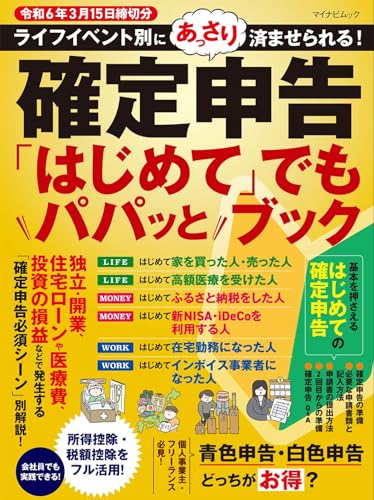 『確定申告「はじめて」でもパパッとブック』は、令和6年3月15日締切分の確定申告に関する実用書です。初心者でも分かりやすく、手続きや注意点が簡潔に解説されています。税金の基本知識も網羅し、スムーズな申告をサポートします。