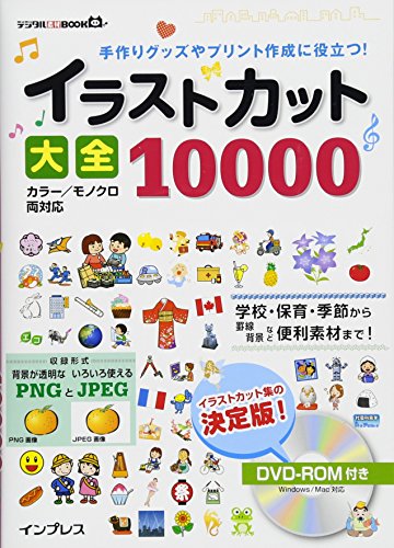 「手作りグッズやプリント作成に役立つ!イラストカット大全10000」は、豊富なイラスト素材を収録したデジタル素材BOOKです。多様な用途に対応し、創作活動をサポートします。