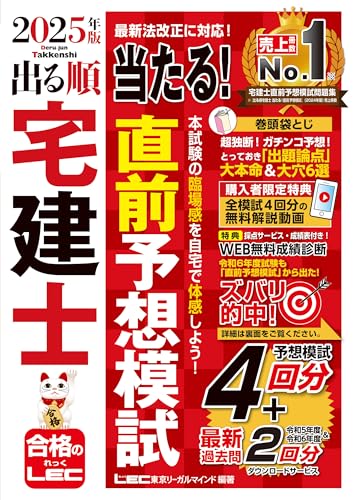 【動画付/成績診断付】2025年版 出る順宅建士 当たる!直前予想模試は、模試4回分と最新過去問を収録。全模試に解説動画が付いており、宅地建物取引士試験対策に最適です。