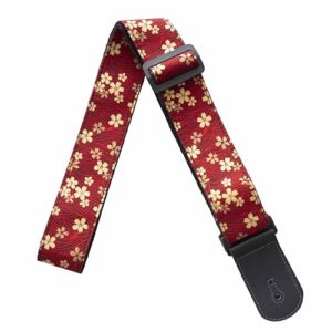 [C-RAYS] 和柄 ギターストラップ エレキギター ベース アコギ 和風 アコースティック ギター ストラップ (レッド 桜)