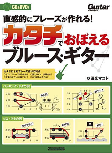 「直感的にフレーズが作れる! カタチでおぼえるブルース・ギター」は、初心者から中級者向けのギター教則本です。CDとDVD付きで、視覚的に学びながらブルースのフレーズを習得できる内容になっています。