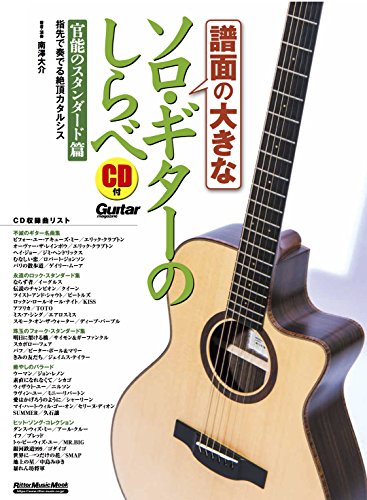 「譜面の大きなソロ・ギターのしらべ 官能のスタンダード篇」は、リットーミュージックから出版されたギター愛好家向けのムック。人気スタンダード曲を収録したCD付きで、演奏を楽しむための譜面が提供されています。