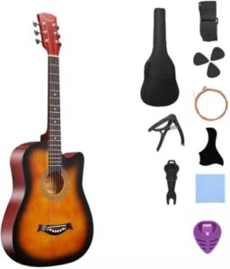 Xiraivke アコースティック 10点セット 学生 大人用 初級 アコギセット 38インチ 入門練習 学生、子供、大人向けの初心者練習用ギター、用セット、、アコースティック、弦、チューナー (ブラウン)