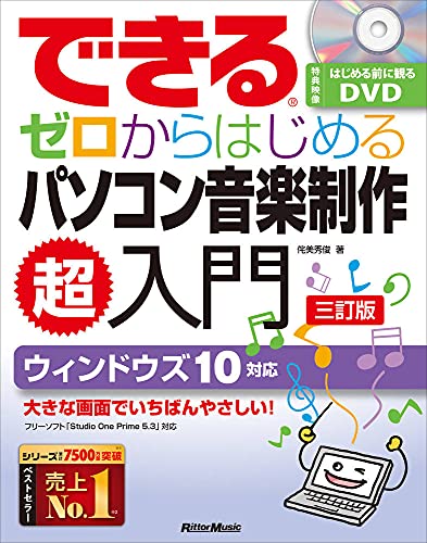 「できる ゼロからはじめるパソコン音楽制作 超入門【三訂版】」は、初心者向けにパソコン音楽制作を学べる書籍です。DVD付きで、Studio One Prime 5.3に対応。基礎から丁寧に解説しています。