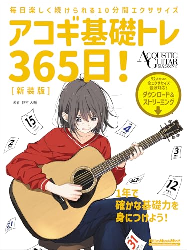 『アコギ基礎トレ365日! 新装版』はリットーミュージックから刊行されたムックで、アコースティックギターの基礎を365日間で学べる内容です。初心者から中級者向けの練習法やテクニックが満載。