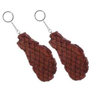 HONMEET 2個フェイクフードキーチェーン ペンダント付き ノベルティ風 ステーキモデル 人工牛肉 リアル食玩デザイン キーリング ハンドバッグチャーム 実用的 耐摩耗性素材 ステンレス製