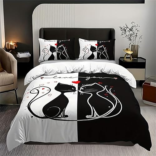 白黒猫のデザインが特徴的なシングルサイズの布団カバー3点セットです。素材は柔らかく、肌触りが良いポリエステル製。寝室を可愛らしく演出し、猫好きにはたまらないアイテムです。