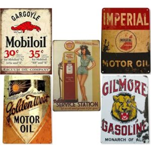 RYOHIN Lab. ブリキ看板 アメリカン レトロ ビンテージ バイク 車 ガレージ 壁掛け プレート アンティーク 雑貨 インテリア 5枚セット (タイプA)