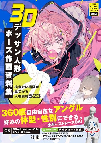 3Dデッサン人形ポーズ作画資料集の「CLIP STUDIO PAINT PRO/EX対応」は、描きたい構図が見つかる523の人物素材を収録。多彩なポーズで創作をサポートし、イラスト制作がより楽しく便利に。