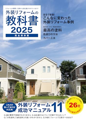 外装リフォームの教科書2025は、最新のリフォーム技術や素材を紹介する情報源です。持続可能性や省エネを考慮した製品が多く、施工方法やトレンドも解説しています。