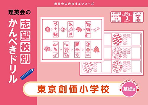 『志望校別かんぺきドリル 東京創価小学校(基礎)』は、理英会が提供する小学校受験対策のためのドリルです。基礎力を育成し、合格に向けた実践的な問題が豊富に収録されています。