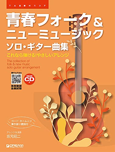 『青春フォーク&ニューミュージック/ソロ・ギター曲集』は、TAB譜付きで模範演奏CDが付属。YouTube演奏動画とも連動しており、ギター初心者から上級者まで楽しめる内容です。