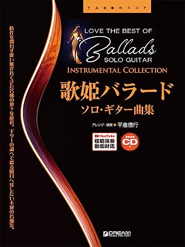 「歌姫バラード/ソロギター曲集」は、人気のバラード曲をソロギター用にアレンジしたTAB譜付きの楽譜集です。模範演奏CDも付いており、演奏の参考になります。様々なレベルのプレイヤーに対応しています。