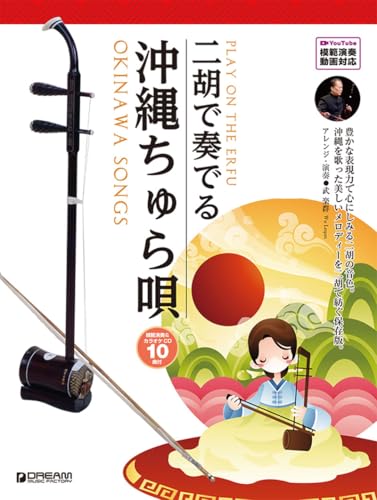 二胡で奏でる沖縄ちゅら唄のCDには、QRコードで模範演奏を試聴できる10曲とカラオケ版10曲が含まれています。沖縄の美しいメロディを楽しめる一枚です。