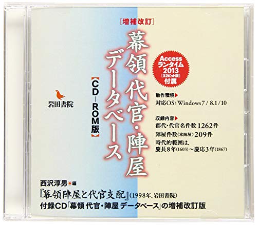 幕領代官・陣屋データベース: CO-ROM版は、日本の幕末・明治期における代官所と陣屋の詳細情報を網羅。歴史研究や観光に役立つ貴重な資料が収録されています。