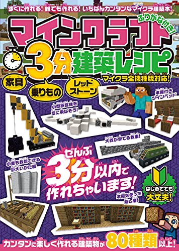 『マインクラフト 3分建築レシピ』は、家具や乗り物、レッドストーンの簡単な建築物が紹介されたガイドブックです。すべてのレシピが3分以内で作成可能で、楽しく手軽にマインクラフトの世界を広げることができます。