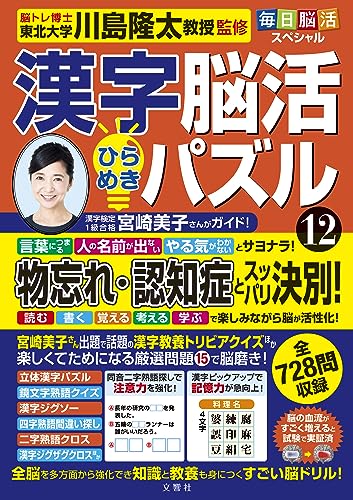 毎日脳活スペシャル 漢字脳活ひらめきパズル⑫は、漢字を使った様々なパズル問題で脳を活性化します。楽しく解くことで記憶力や思考力を鍛え、脳トレに最適。シンプルなルールで初心者から楽しめる内容です。