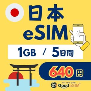 【eSIM】日本 1GB/5日間 ダウンロードデータeSIM 買い切りプリペイド型1GBデータ通信/日本への帰省時や、あと少し容量が欲しい時、サブの端末へ少しの間設定したい時などに最適!