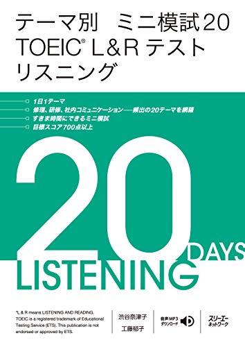 テーマ別 ミニ模試20 TOEIC® L&Rテスト リスニングは、TOEICリスニング対策用の問題集です。各テーマに合わせた問題を収録しており、実践的なリスニング力を養えます。模試形式でスコア測定も可能です。