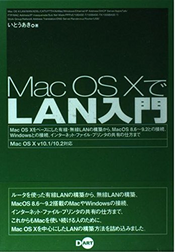 Mac OS XでのLAN構築ガイド。有線・無線LANのセットアップ、Mac OS 8.6~9.2やWindowsとの接続、インターネット共有やファイル・プリンタ共有方法を解説。
