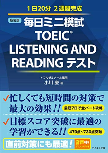 『毎日ミニ模試TOEIC LISTENING AND READINGテスト 新装版』は、TOEIC対策のための教材です。音声ダウンロード機能付きで、実際の試験に即したミニ模試によって練習ができます。効率的にスコアアップを目指せる一冊です。