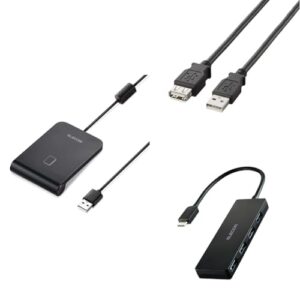 エレコム(ELECOM) ICカードリーダー MR-ICA001BK 非接触式 3年保証 パソコン Windows mac対応 【マイナンバーカード/e-Tax 確定申告/電子車検証/eLTAX/FeliCa/MIFAREカード対応】 ケーブル1m ブラック+ USB延長ケーブル3m U2C-E30BK + ハブ U3HC-H040BK セット