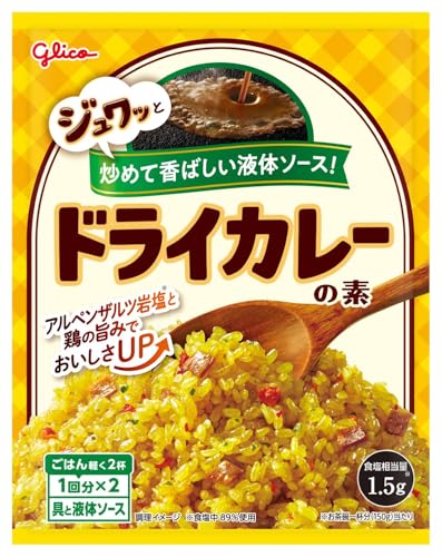 江崎グリコのドライカレーの素(56.0g)は、簡単に本格的なドライカレーが楽しめる調味料です。スパイシーで風味豊か、チャーハンやリゾットにも使える手軽さが魅力。忙しい時にもさっと調理可能です。