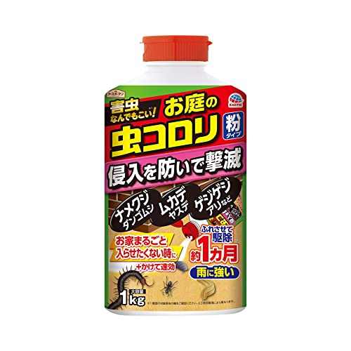 アースガーデン お庭の虫コロリ 粉タイプは、幅広い害虫に効果的な駆除剤。1kg入りで、ナメクジ、ムカデ、アリ、カメムシなど家庭菜園や観葉植物に使用できます。使いやすさと効果が魅力のガーデニング商品です。