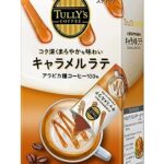 TULLY’S COFFEEのスティックキャラメルラテは、15.8g入りが5袋パックのインスタント粉末です。手軽に美味しいキャラメルラテが楽しめ、温かい飲み物としても冷たい飲み物としてもアレンジ可能です。