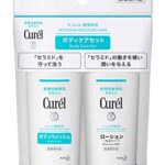 キュレルのトライアルセットは、ボディウォッシュ45mlとローション45mlの2個アソート。赤ちゃんも使用可能で、敏感肌向けのやさしい処方。肌をしっかり保湿し、しっとりとした質感を保ちます。
