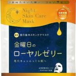 肌美精の薬用金曜日のナイトスキンケアマスクは、夜間用のシートマスクです。ハリ、毛穴ケア、保湿をサポートし、ローヤルゼリー成分を配合した美容液が肌を潤します。3枚入りで、手軽に使用できるスキンケアアイテムです。