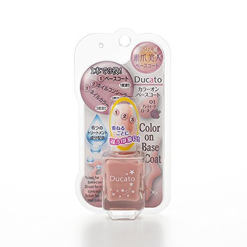 デュカート カラーオンベースコート 01 アンティークローズは、ベースコート・ネイルコンシーラー・ネイルカラーの3役をこなす便利なアイテムです。しっかりとした色合いで、爪を美しく演出します。