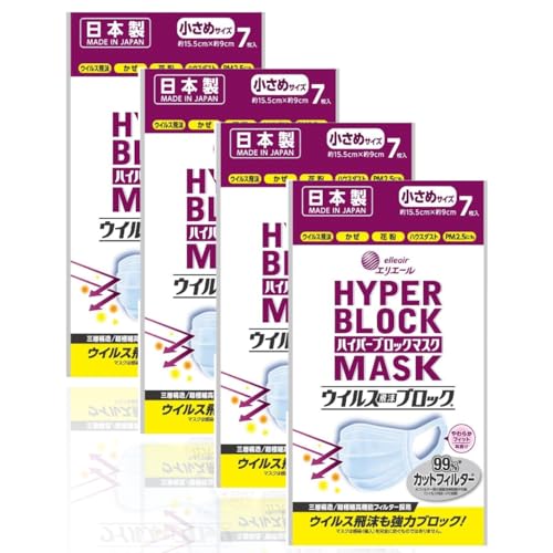 エリエールのハイパーブロックは、飛沫をしっかりブロックする小さめサイズのサージカルマスクです。日本製で高機能、7枚入りが4袋セット、オリジナルのおみくじカードも付いています。