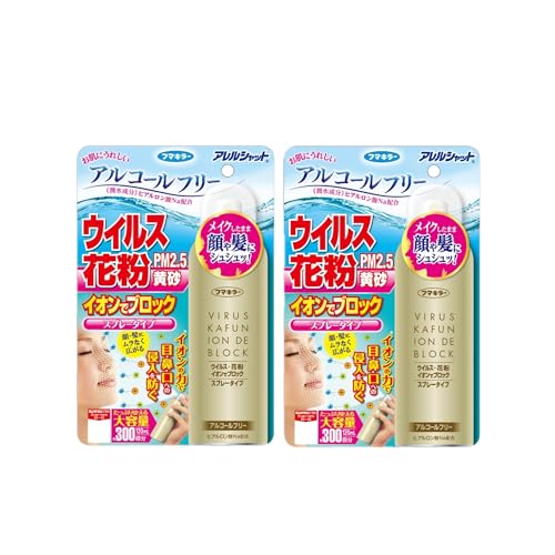 フマキラー アレルシャット ウイルス花粉イオンでブロックは、ウイルスや花粉をスプレーで効果的にブロックする製品です。300回使用できるスプレータイプで、2個セットとなっています。