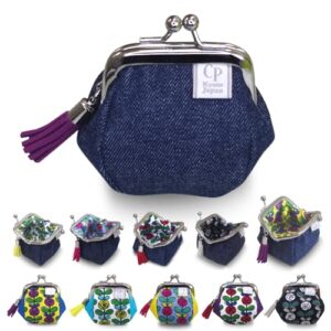 CP-Kyoto がま口財布 日本製 小銭入れ 小さめ かわいい プチギフト がまぐち ミニ ローズ 薔薇 デニム×パープルローズ