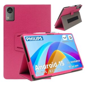 ShellChic タブレットケース 10.1インチ 全面保護カバー 擦り傷防止ブレットカバー防水防汚 高級PU タブレット ケース 良い手触りPHILIPSタブレット10 インチ ケース 薄型軽量 android 15 タブレットカバーケース 調節可能 手持ちのゴムバンドです キズ防止 For PHILIPS T7315/BNCF Bpad 10 SE(レッド)