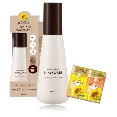 ディアボーテ トリートメントリペアミルク 120mlは、ヒマワリ成分配合のヘアミルクです。うねりやくせ毛、パサつき、湿気対策に最適で、しっとりとした仕上がりを実現します。おまけ付きでお得です。