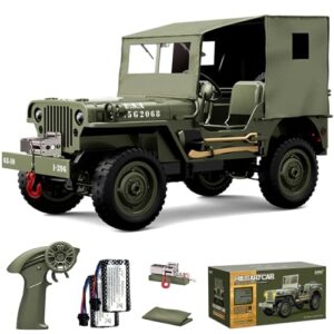 Ritaosan 軍用 ラジコンカー 子供向け 人気 1/10 大型 オフロード ジープ ラジコン クローラー 車 モデル 4WD リアルなヘッドライト 2.4GHz バッテリー2個 操作時間约80分 大人向け 電動 おもちゃ 技適認証済み 男の子 小学生 中学生 プレゼント クリスマス お祝い 贈り物 (標準装備+ウィンチ+キャンバス)