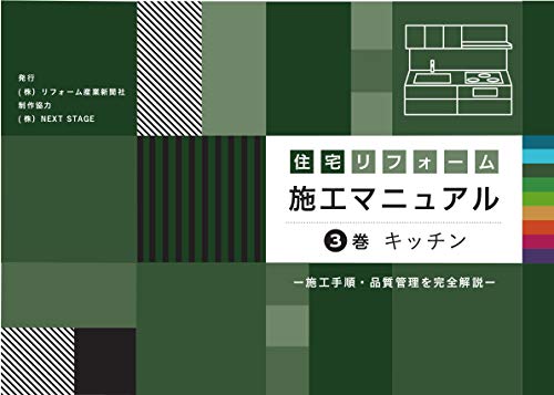 住宅リフォーム施工マニュアル3巻では、キッチンの製品情報として、キャビネット、カウンタートップ、シンク、水栓金具などの選定基準や施工方法について詳述しています。デザインや機能性を考慮した商品選びが重要です。