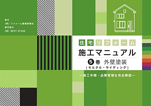 住宅リフォーム施工マニュアル5巻では、外壁塗装に関するモルタルおよびサイディングの製品情報を提供しています。耐久性や防水性、各種色彩の選択肢が詳述されています。施工手順や注意点も含まれ、最適な仕上がりを実現します。