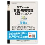 リフォーム営業・現場管理最強マニュアル 浴室編では、浴室リフォームのプロセスや営業テクニック、現場管理のポイントを詳細に解説。顧客ニーズに応える商品選定や施工管理のコツを学べる必携の一冊です。