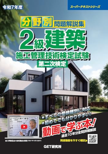 令和7年度の2級建築施工管理技術検定試験に対応した分野別問題解説集です。スーパーテキストシリーズとして、効率的な学習をサポートする内容です。