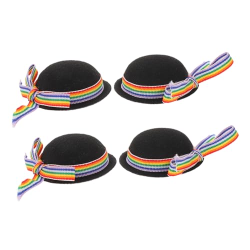 黒色のミニトップハット4個セット。フェルト素材で柔らかく、軽量なため、装飾やコスプレに最適です。サイズは子供から大人まで使える調整可能なデザイン。パーティーやイベントに華やかさを加えます。