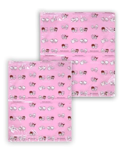 サンリオの旅行用衣類圧縮袋。厚手で日本製、かわいいキャラクター(ハローキティ、ダニエル、シナモロール、ポムポムプリン、マイメロディ、クロミ)をデザイン。M×1、L×1のセット。